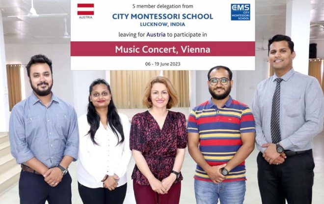 सिटी मोन्टेसरी स्कूल के संगीत शिक्षकों का पाँच सदस्यीय दल आस्ट्रिया की राजधानी वियना में आयोजित इण्टरनेशनल म्यूजिक कन्सर्ट में प्रतिभाग हेतु 15-दिवसीय यात्रा पर आस्ट्रिया जायेगा, जहाँ वे म्यूजिक कन्सर्ट में अपनी सुमधुर संगीत प्रस्तुतियों का समाँ बाधेंगे। म्यूजिक कन्सर्ट में प्रतिभाग हेतु आस्ट्रिया रवाना होने वालों में सी.एम.एस. की पाश्चात्य संगीत शिक्षिका सुश्री जिनस येगन, सी.एम.एस. गोमती नगर (प्रथम कैम्पस) के संगीत शिक्षक श्री ओस्विन मोजेस, सी.एम.एस. गोमती नगर (द्वितीय कैम्पस) के संगीत शिक्षक श्री उत्कर्ष श्रीवास्तव एवं सी.एम.एस. राजाजीपुरम कैम्पस के संगीत शिक्षक सुश्री सृष्टि पाण्डेय एवं श्री अभय सैमुअल पीटर शामिल हैं। यह इण्टरनेशनल म्यूजिक कन्सर्ट वियना में 6 से 19 जून तक आयोजित किया जा रहा है। इस संगीत महोत्सव में सी.एम.एस. के संगीत शिक्षक जर्मन संगीतकार कार्ल ओर्फ द्वारा रचित गीतों की प्रस्तुति देंगे, साथ ही सी.एम.एस. में छात्रों को प्रदान की जा रही संगीत शिक्षा का परचम भी लहरायेंगे। सी.एम.एस. का मानना है कि छात्रों को जीवन मूल्यों व उच्च विचारों से भरपूर संगीत एवं ललित कलाओं की शिक्षा अनिवार्य रूप से प्रदान की जानी चाहिए। सुमधुर संगीत मन को सुन्दर, शान्त एवं सरस बनाने के साथ ही आत्मबल की वृद्धि में सहायक होता है एवं भावी पीढ़ी के सर्वांगीण विकास में महत्वपूर्ण भूमिका निभाता है। यही कारण है कि सी.एम.एस. में संगीत शिक्षा पर विशेष बल दिया जाता है।