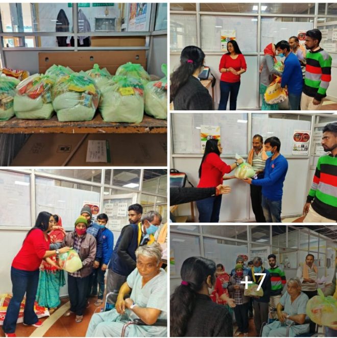 राम मनोहर लोहिया अस्पताल में कैंसर पीड़ितों के तीमारदारों के लिए 1 महीने के राशन का सहयोग पूर्णिमा जी द्वारा कराया गया।