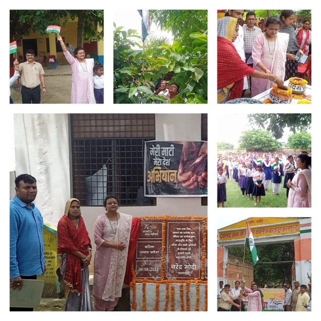 इससे पूर्व जिलाधिकारी, ग्राम बाढ़ापुर के दयानन्द ग्राम औ. इण्टर कालेज भी गयी, जहां पर अमृत कलश में बच्चों द्वारा अपने घर से लायी गयी मिट्टी को डलाकर एक जागरूकता रैली भी निकाली। इस जागरूकता रैली ने पूरे गांव में भ्रमण कर ‘‘मेरी माटी, मेरा देश‘‘ के कार्यक्रम से ग्रामवासियों को परिचित कराया। इस मौके पर देश भक्ति गीत भी बच्चों द्वारा प्रस्तुत किये गये।