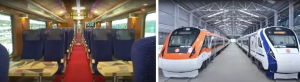 - सुविधाएं: वंदे भारत ट्रेन में सभी आधुनिक सुविधाएं उपलब्ध हैं, जिनमें वातानुकूलित डिब्बे, बिजली के प्लग, पेयजल और भोजन की सुविधा शामिल है। साधारण ट्रेनों में इन सुविधाओं का अभाव होता है।