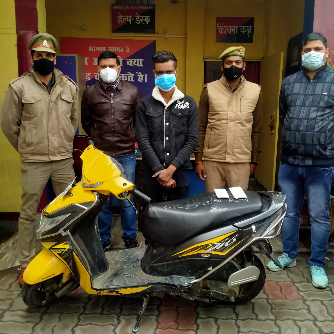 आए दिन लोगों को अपना निशाना बना कर लूट करने वाला शातिर लुटेरा दीपक गिरफ्तार जिसके पास से मोबाइल व घटना के टाइम स्कूटी हुई बरामद ।