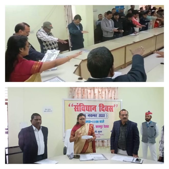 कानपुर देहात, 20 नवंबर 1949 को हमारा संविधान पूर्ण रूप से बनकर तैयार हुआ इसी उपलक्ष में संविधान दिवस मनाया जाता है ताकि इसकी उपयोगिता और महत्व से आज की चिड़ियों को अवगत कराया जा सके इस संविधान निर्माण में निश्चित रूप से बाबा साहब भीमराव अंबेडकर का महत्वपूर्ण योगदान है लेकिन इसके अलावा भी अन्य व्यक्तियों ने भी बहुत बड़ी भूमिका अदा की है जिसमें पहला नाम इस संविधान को अपने हाथ से लिखने वाले “प्रेम नारायण रायजादा” का स्मरण आता है जिन्होंने संविधान को हिंदी में अंग्रेजी में अपने हाथों से लिखा और लिखने के एवज में कोई मेहनताना भी नहीं लिया और कहा कि मेरी स्मृतियों को इसमें सजो कर रखा जाएगा यही मेरा देयक होगा। दूसरा योगदान जो इसमें चित्रकारी की गई है जिसको “नंदलाल बोस” द्वारा बनाया गया है इसके अलावा विभिन्न समितियों के अध्यक्षों द्वारा अपने अपने कर्तव्यों का निर्वहन करते हुए इस संविधान की रचना की और इस संविधान की विशेषता रही है कि भारत को एक समावेशी एक संपूर्ण और एक लोकतांत्रिक रूप में बदलने की जो संविधान ने भूमिका अदा की है निश्चित रूप से सराहनीय है, प्रशंसनीय है। ऐसे ही महान व्यक्तित्व के धनी व्यक्तियों को आज कलेक्ट्रेट परिसर में संविधान दिवस का आयोजन जिलाधिकारी नेहा जैन की अध्यक्षता में किया गया। उन्होनें संविधान दिवस के संबंध में बताते हुए कहा कि आज का दिवस ‘संविधान दिवस’ के रूप में भी जाना जाता है, हमारे देश में हर साल 26 नवंबर को भारत के संविधान को अपनाने के उपलक्ष्य में मनाया जाता है। 26 नवंबर 1949 को, भारत की संविधान सभा ने भारत के संविधान को अपनाया, जो 26 जनवरी 1950 से लागू हुआ। सामाजिक न्याय और अधिकारिता मंत्रालय ने 19 नवंबर 2015 को नागरिकों के बीच संवैधानिक मूल्यों को बढ़ावा देने के लिए हर साल 26 नवंबर को ‘संविधान दिवस’ के रूप में मनाने के भारत सरकार के फैसले को अधिसूचित किया। उन्होनें उपस्थित सभी को आज के इस दिन को पुनः याद कर संवेदनाएं व्यक्त करते हुए कहा कि आज का दिन उन सभी विभूतियों का स्मरण दिलाती है, जिनके अथक प्रयासों व अभूतपूर्व योगदान देकर संविधान को बनाया। उन्होंने सभी को संविधान के अनुरूप चलने व उसकी रक्षा करने हेतु कार्य किये जाने पर जोर देते हुए सभी को उद्देशिका का पाठ व शपथ कराई कि