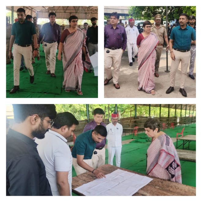 तत्पश्चात राज्य निर्वाचन आयोग, उ०प्र० लखनऊ द्वारा नियुक्त जनपद कानपुर नगर की प्रेक्षक श्रीमती मनीषा त्रिघाटिया द्वारा नगरीय निकाय सामान्य निर्वाचन-2023 में नगर निगम के महापौर, पार्षदों, के सामान्य निर्वाचन को शांतिपूर्ण, निष्पक्ष, पारदर्शी एवं सुचारू रूप से संपन्न कराए जाने हेतु नवीन गल्ला मंडी, नौबस्ता में चल रहे वार्ड वार ई०वी०एम०, कैंडीडेट सेटिंग कार्यों के साथ-साथ मतगणना की तैयारियों का निरीक्षण किया गया और पोलिंग पाटियों की रवानगी एवं मतगणना हेतु कराई जा रही व्यवस्थाओं की समीक्षा की गई।
