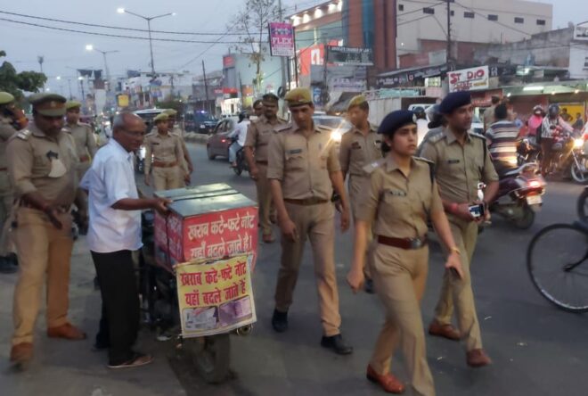 _*जिसके मद्देनजर एडीसीपी प्राची सिंह एसीपी गाज़ीपुर सुनील शर्मा व इंस्पेक्टर गुडंबा कुलदीप सिंह गौर ने अपनी फ़ोर्स के साथ कुर्सी रोड पर किया पैदल मार्च*_
