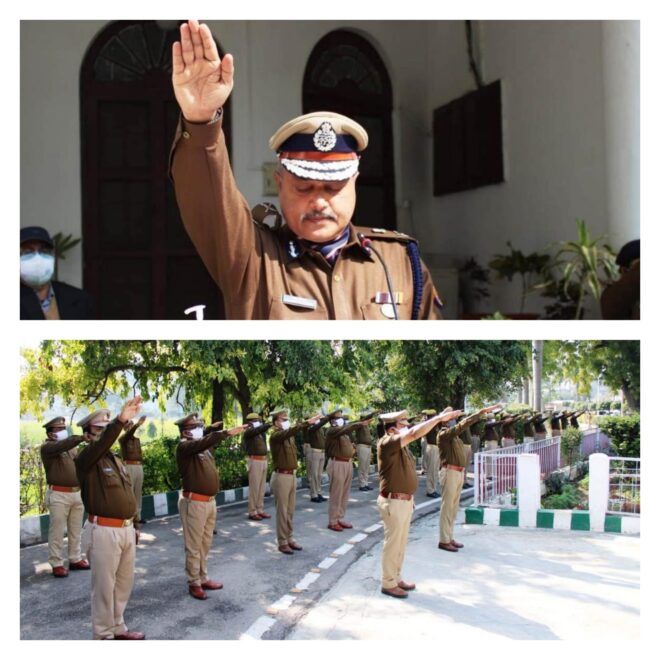 कानपुर ’’राष्ट्रीय मतदाता दिवस’’ के अवसर पर भानु भास्कर, अपर पुलिस महानिदेशक, कानपुर जोन, कानपुर द्वारा जोनल कार्यालय में कार्यरत अधिकारी/कर्मचारीगणों को स्वतंत्र, निष्पक्ष एवं शान्तिपूर्ण निर्वाचन की गरिमा को अक्षुण्य रखते हुए, निर्भीक होकर, धर्म, वर्ग, जाति, समुदाय, भाषा अथवा अन्य किसी भी प्रलोभन से प्रभावित हुए बिना, सभी निर्वाचनों में अपने मताधिकार के प्रयोग की शपथ दिलाई गयी।