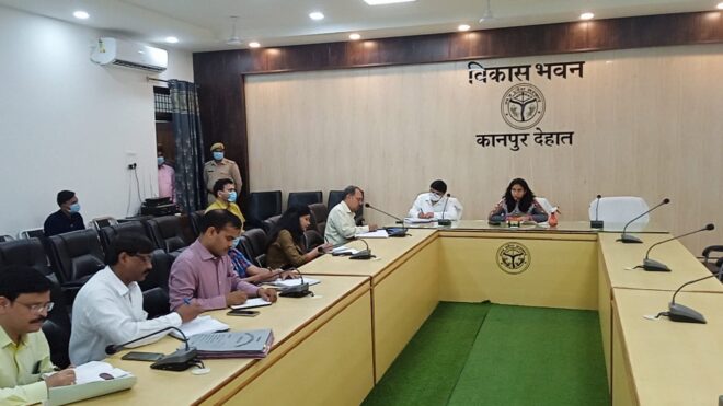 कानपुर देहात, शासन के निर्देशों के तहत मुख्य सचिव द्वारा वीडियो कान्फ्रेसिंग में दिये गये निर्देशों के तहत आज मुख्य विकास अधिकारी सौम्या पाण्डेय ने विभिन्न विभागों के अधिकारियों के साथ बैठक की। मुख्य विकास अधिकारी ने कहा कि प्रशासन ने अब कमर कस ली है, अधिकारी एवं कर्मचारी अपने अपने कार्यालयों में समय पर उपस्थित हो।
