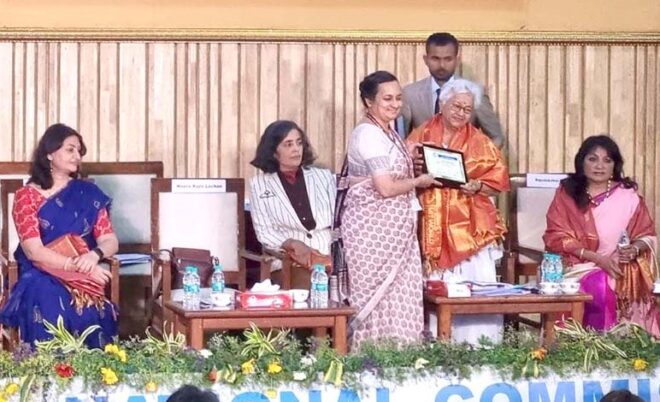 मीता राजीव लोचन, आई.ए.एस. ने डा. भारती गाँधी को प्रशस्त पत्र व अंगवस्त्र भेंट कर सम्मानित किया। इससे पहले, डा. गाँधी ने राष्ट्रीय महिला आयोग के तत्वावधान में आयोजित ‘लीडरशिप डेवलपमेन्ट प्रोग्राम फॉर चेरयपरसन्स ऑफ स्टेट कमीशन फॉर वोमेन’ सम्मेलन में बतौर मुख्य वक्ता अपने सारगर्भित विचार रखे। इस अवसर पर डा. गाँधी ने कहा कि महिला सुरक्षा व महिला सशक्तीकरण ही सामाजिक विकास का आधार है।