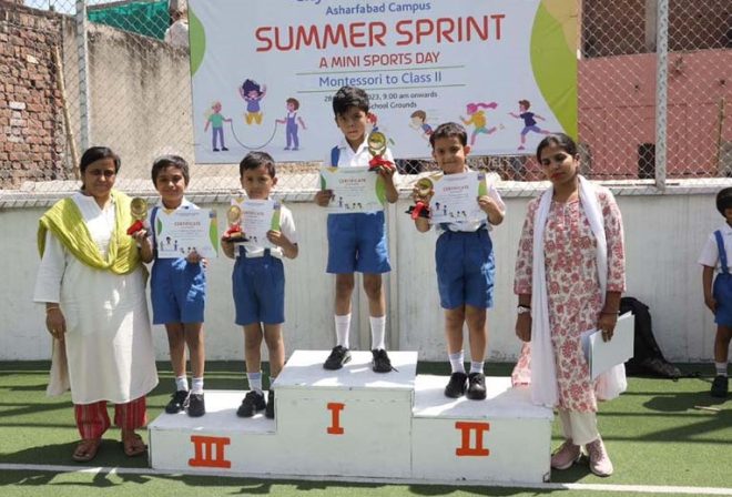 सिटी मोन्टेसरी स्कूल, अशर्फाबाद कैम्पस द्वारा ‘मिनी स्पोर्टस डे’ का आयोजन आज विद्यालय प्रांगण में सम्पन्न हुआ। इस अवसर पर प्री-प्राइमरी व प्राइमरी के नन्हें-मुन्हें छात्रों ने अपनी अभूतपूर्व खेल प्रतिभा से दर्शकों को मंत्रमुग्ध कर दिया एवं चुस्ती-फुर्ती से परिपूर्ण फिजिकल फिटनेस एक्टिवटी द्वारा इण्डिया फिट एण्ड यंग का सन्देश दिया। खेल समारोह का शुभारम्भ सर्व-धर्म एवं विश्व शान्ति प्रार्थना से हुआ एवं इसके उपरान्त खेल की विभिन्न प्रतियोगिताओं में सर्वाधिक पदकों के जबरदस्त होड़ रही और छात्रों ने अपनी शक्ति, दमखम, प्रतिभा व क्षमता का भरपूर प्रदर्शन किया। विद्यालय के नन्हें-मुन्हें छात्रों ने विभिन्न प्रकार की रेस जैसे हर्डल रेस, बैक पैक रेस, रॉक स्टार रेस, रिले रेस, वर्ल्ड बिल्डर रेस व अन्य रोचक खेलों में अपनी खेल प्रतिभा का गजब का प्रदर्शन किया। खेल समारोह में बच्चों के माता-पिता व अभिभावकों ने भी बड़े उत्साह से प्रतिभाग किया।