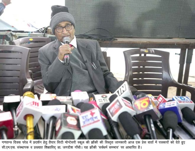 ‘ईश्वर, अल्लाह, वाहे गुरू, चाहे कहो श्री राम, मालिक सबका एक है, अलग-अलग हैं नाम’ की भावना से लबरेज सिटी मोन्टेसरी स्कूल की अनूठी झाँकी आज जनमानस को गणतन्त्र दिवस परेड में ‘सर्वधर्म समभाव’ का संदेश देगी। एक प्रेस वार्ता में झाँकी के विभिन्न पहलुओं से पत्रकारों को अवगत कराते हुए सी.एम.एस. संस्थापक व प्रख्यात शिक्षाविद् डा. जगदीश गाँधी ने बताया कि यह झाँकी ‘सर्वधर्म समभाव’ एवं ‘वसुधैव कुटुम्बकम्’ की महान संस्कृति के अनुरूप मानव मात्र से प्रेम करने की प्रेरणा दे रही है एवं प्रेम, प्यार, सहयोग, सौहार्द व भाईचारा से ओतप्रोत विश्व व्यवस्था का आह्वान कर रही है।पत्रकारों से बातचीत करते हुए डा. गाँधी ने कहा कि सी.एम.एस. की यह झाँकी मात्र प्रदर्शन भर के लिए नहीं है अपितु इसके पीछे एक उद्देश्य है कि सम्पूर्ण मानव जाति के हृदय में प्रेम व एकता की भावना को जगाकर पृथ्वी पर आध्यात्मिक सभ्यता की स्थापना की जाये। डा. गाँधी ने कहा कि यह झाँकी जनमानस को ‘ईश्वरीय एकता’ की अवधारणा से अवगत कराती है और संदेश देती है कि सभी धर्मों की प्रार्थनाएं एक ही ईश्वर तक पहुंुचती हैं। सभी धर्म विश्व मानवता के कल्याण हेतु जनमानस को प्रेरित करते हैं।झाँकी की विशेषताओं पर प्रकाश डालते हुए डा. गाँधी ने बताया किझाँकी के तृतीय भाग में विश्व संसद के प्रारूप के साथ भारतीय संविधान के अनुच्छेद 51 की भावना के अनुरूप विश्व एकता की अपील की गई है, साथ ही संत कबीर, महात्मा गांधी, विनोबा भावे, मदर टेरेसा एवं धर्म गुरू दलाईलामा की तस्वीरोें के साथ विश्व मानवता से प्रेम करने का संदेश दिया गया है। झाँकी के अंतिम भाग में राष्ट्रपिता महात्मा गाँधी की भव्य प्रतिमा के साथ ही उनका संदेश ‘बुरा मत सुनो, बुरा मत देखो, बुरा मत बोलो’ प्रसारित किया जा रहा है।