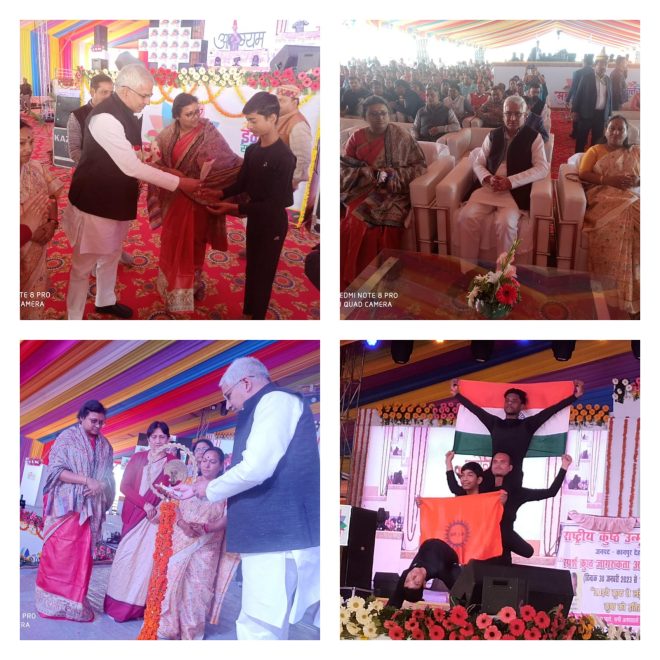 जिला प्रशासन द्वारा आयोजित कानपुर देहात महोत्सव के दूसरे दिन आरोग्यं स्वास्थ्य मेले के आयोजन में बतौर मुख्य अतिथि पहुंचकर प्रदेश के स्वास्थ्य राज्य मंत्री मयंकेश्वर शरण सिंह ने दीप जलाकर औपचारिक शुरुआत की। कार्यक्रम में स्वास्थ्य मंत्री ने संबोधित करते हुए प्रदेश सरकार व केंद्र सरकार की स्वास्थ्य योजनाओं के बारे में विस्तार से जानकारी दी। उन्होंने कहा कि कोरोना काल में जब पूरा विश्व संकट की घड़ी से जूझ रहा था उस समय केंद्र व प्रदेश की सरकारों ने अपने कुशल नेतृत्व से वैक्सीन बनाकर आम जनमानस की जीवन रक्षा की अस्पतालों को आधुनिक सुविधाओं से सुसज्जित किया गया आजादी के बाद पहली बार भारतीय जनता पार्टी की सरकार ने अस्पतालों को आधुनिक सुविधाएं देकर आम जनमानस की स्वास्थ्य सेवाओं को बढ़ाने का काम किया है। उन्होंने कहा आयुष्मान योजना के साथ ही गोल्डन कार्ड लागू कर लोगों का निशुल्क उपचार करने के लिए भाजपा सरकार ने कदम बढ़ाया है। निशुल्क टीकाकरण अभियान, के साथ ही अनेक योजनाओं का संचालन कर आम जनमानस की सेहत व्रत रखने के लिए केंद्र व प्रदेश की सरकारें पूरी तरह से दृढ़ संकल्पित हैं। वही आरोग्यम में स्थानीय नर्सिंग कालेज की छात्राओं ने गणेश वंदना के साथ कोरोना काल को लेकर संगीत नृत्य के की बेहतरीन प्रस्तुति दी जिसे देखकर दर्शक रोमांचित हो उठे। वहीं आयुर्वेद विभाग की ओर से योग क्रिया का अदभुद प्रदर्शन कर बच्चों ने सबको आश्चर्य चकित कर दिया। परिवार नियोजन कार्यक्रम के लिए विभाग की आशाओं ने नसंबदी पर गीत गाकर सबको खूब हंसाया भी। वहीं कठपुतली के जरिए कुष्ठ निवारण का भी संदेश दिया गया । इसके बाद राज्यमंत्री ने विभाग की ओर से योजनाओं के प्रचार प्रसार के लिए लगाए गए स्टाल का भी निरीक्षण किया। इस दौरान विधायक पूनम संखवार, महानिदेशक चिकित्सा एवं स्वास्थ्य डा. लिली सिंह, अपर निदेशक डा. सरोज बाला, डीएम नेहा जैन, सीडीओ सौम्या पांडेय, सीएमओ डा. एके सिंहआदि रहे।