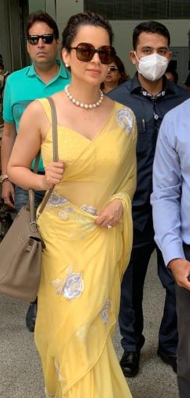 उनके साथ अभिनेता अर्जुन रामपाल,निर्देशक रजनीश घई, दिव्या दत्ता वह फिल्म यूनिट के अन्य सदस्य मौजूद रहे ।विमान से उतरने के बाद कंगना सीधे कार में जाकर सवार हुई और शहर के लिए रवाना हो गई।कंगना शाम को गंग़ा आरती भी देखेंगी और दर्शन पूजन भी करेंगी