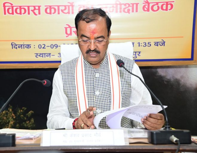 उत्तर प्रदेश के उप मुख्यमंत्री केशव प्रसाद मौर्य द्वारा मिर्जापुर,आयुक्त कार्यालय के सभागार में जनपद के उद्यमियो तदुपरान्त सभी जनपदीय अधिकारियो के साथ बैठक कर उद्यमियो की समस्याओ को सुनते हुये उनके निस्तारण तथा जनपद में कराये गये विकास कार्यो के प्रगति की समीक्षा करते हुये लक्ष्य पूर्ति के निर्देश अधिकारियो को दिया गया।