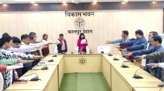 कानपुर देहात, मुख्य विकास अधिकारी सौम्या पांडे ने संविधान दिवस के अवसर पर विकास भवन सभागार कक्ष में उपस्थित समस्त अधिकारी व कर्मचारी को शपथ दिलाई।