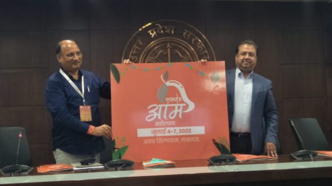 उत्तर प्रदेश के प्रमुख सचिव उद्यान एवं खाद्य प्रसंस्करण श्री राजेश कुमार सिंह ने आज लोक भवन स्थित मीडिया सेन्टर में लखनऊ आम महोत्सव-2022 का लोगो लांच करते हुए बताया कि यह महोत्सव 04 जुलाई से 07 जुलाई तक अवध शिल्पग्राम, लखनऊ में पर्यटन विभाग, सूचना और जनसम्पर्क विभाग और 20 से अधिक राज्य और राष्ट्रीय स्तर पर मंत्रालय और विभागों के सहयोग से आयोजित किया जाएगा।