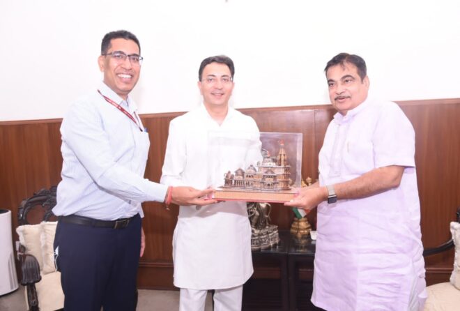 उत्तर प्रदेश के लोक निर्माण मंत्री जितिन प्रसाद द्वारा आज नई दिल्ली में केन्द्रीय सड़क परिवहन एवं राजमार्ग मंत्री नितिन गडकरी से उत्तर प्रदेश में CRIF योजना में प्रदेश का आवंटन बढ़ाने, नये राष्ट्रीय राजमार्ग बनाने एवं प्रदेश में 250 रेलवे क्रासिंग के ऊपर ROB बनाने के संबंध में विस्तृत चर्चा की गयी एवं प्रदेश में राजमार्गों के विकास के संबंध में एक प्रेजेन्टेशन भी प्रस्तुत किया। बैठक में केन्द्रीय राज्यमंत्री (जनरल) श्री वी0के0 सिंह भी उपस्थित थे।