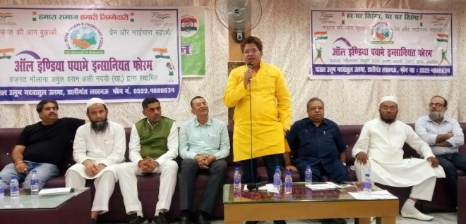 लखनऊ के टूरिया गंज चौराहे पर स्थित अमन शांति समिति हॉल में ऑल इंडिया पयाम ए इंसानियत फोरम के पदाधिकारियों ने हमारा समाज हमारी जिम्मेदारी विषय से एक सेमिनार का आयोजन किया जिसका शुभारंभ डॉक्टर उमंग खन्ना ने अपनी बात रखते हुए किया की सभी बुद्धिजीवियों मनीषियों और शहर के संभ्रांत नागरिकों को मिलकर एक दूसरे का सहयोग करना चाहिए और जरूरतमंदों की मदद करना चाहिए ताकि मोहब्बत और इंसानियत का चलन आम हो जाए आयोजन का संचालन वरिष्ठ होम्योपैथिक चिकित्सक डॉक्टर उमंग खन्ना ने वरिष्ठ पत्रकार हेमंत कृष्णा वरिष्ठ आरटीआई एक्टिविस्ट तनवीर अहमद सिद्दीकी, एनपीटीआई अध्यक्ष नजम एहसन जावेद बेग, वरिष्ठ समाजसेवी मोहम्मद ज़ीशान रिज़वान कुरैशी, मोहम्मद गुफरान, अमन शांति समिति के उपाध्यक्ष इसराइल कुरेशी, मोहम्मद रिज़वान, की मौजूदगी में किया सेमिनार में मौलाना कौसर नदवी ने सेमिनार में सबसे पहले बोलते हुए कहा की हर देश की मिट्टी की अपनी खासियत है लेकिन हिंदुस्तान की मिट्टी में प्यार मोहब्बत और अपनेपन का एहसास और सुगंध मौजूद है जो तमाम हिंदुस्तानियों को आपस में संस्कृति साहित्य और मानवता के साथ जोड़ती है, फ्रीलांस पत्रकार वरिष्ठ समाजसेवी सुशील दुबे ने अपने वक्तव्य में कहा की हम अपने बुजुर्गों की रवायत से और उनके उसूलों से दूर होते जा रहे हैं जिस कारण आपसी सद्भावना इंसानियत और सौहार्द कहीं ना कहीं आहत हो रहे हैं हमें ज़रूरत है देश और अपने बच्चों का भविष्य बनाने के लिए अपने बच्चों को अपने बुजुर्गों की रवायत और उनके आदर्शों से जोड़ने की, वरिष्ठ समाजसेवी पत्रकार अब्दुल वहीद ने अपनी बात रखते हुए कहा की हमें अपने अंदर से अहंकार और नफरतों को दूर करना होगा तभी यह समाज बेहतर बन सकता है हर इंसान को ज़रूरतमंद इंसान की मदद करने के लिए आगे आना चाहिए अपनी क्षमता के अनुसार, राजधानी के चर्चित उद्घोषक लेखक आमिर मुख़्तार ने कहा की हमारे होने से अगर लोगों को फायदा हो किसी को नुकसान नहीं हो यही इंसानियत है अपने ईश्वर को खुश करने का सबसे आसान तरीका है उसके बनाए हुए इंसानों के दुख दर्द उनकी परेशानियों को दूर करो और उन्हें खुश रखो, वरिष्ठ समाजसेवी ऋतुराज रस्तोगी ने अपने वक्तव्य में कहा की हम अगर इंसान हैं तो हमारे अंदर इंसानियत का होना अति आवश्यक है दूसरों की मदद बिना भेदभाव के करना ज़रूरतमंद की ज़रूरत को पूरा करना ही इंसानियत है, वरिष्ठ समाजसेवी पत्रकार परवेज अख़्तर ने चंद पंक्तियों के माध्यम से अपनी बात रखी जिसमें उन्होंने कहा कि हम पढ़ने लिखने के बाद भी अपनी सामाजिक जिम्मेदारियों को नहीं निभा पा रहे हैं, वहीं वरिष्ठ फोटोजर्नलिस्ट अज़ीज़ सिद्दीक़ी ने सभी से कहा कि हमें भाईचारे और मोहब्बत का पैगाम देना है नफरत