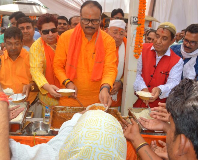 उपमुख्यमंत्री बृजेश पाठक ने किया भंडारे का उद्घाटन,लोगो को बांटा प्रसाद