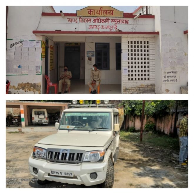 कानपुर देहात, रसूलाबाद ब्लाक में तैनात ग्राम सचिव ने नशे बाजी करने के बाद ब्लॉक परिसर में जमकर हंगामा काटा खंड विकास अधिकारी कार्यालय के समक्ष अपनी गाड़ी खड़ी कर काफ़ी देर तक हूटर बजाता रहा। बीडीओ के मना करने पर उनसे भी अभद्रता करने लगा जिसके बाद बीडीओ ने रसूलाबाद पुलिस को सूचना दी। सूचना मिलते ही पुलिस मौके पर पहुंची लेकिन पुलिस के हूटर सुनते ही ग्राम सचिव भाग निकला। पुलिस ने गाड़ी से उतरने के बाद वाहन का चालान कर दिया है वही बीडीओ ने ग्राम सचिव के विरुद्ध कार्यवाही के लिए उच्चाधिकारियों को पत्र भेजा है।