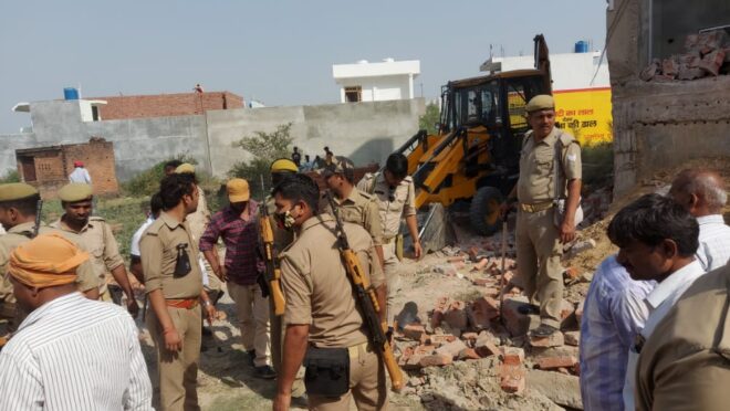 _*जानकीपुरम थाने के अंतर्गत मौर्य भट्ठे के पास बिल्डिंग पर चला बुल्डोजर*_